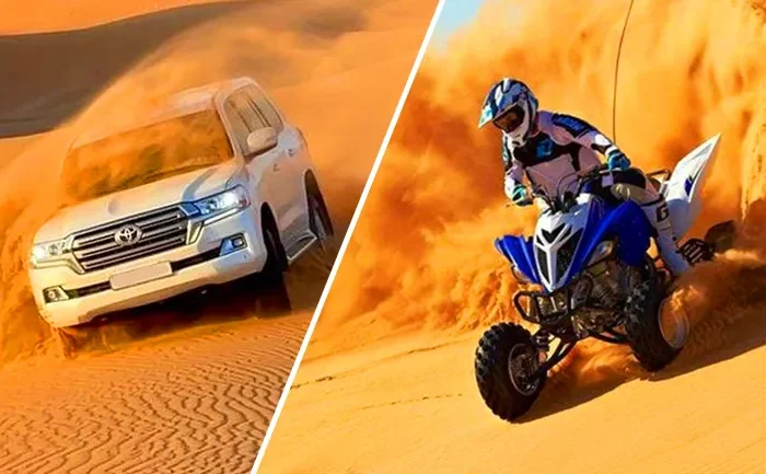 Trading spectator seats for the driver’s seat, a Desert Safari Quad Bike Ride unleashes pure adrenaline as you command your own powerful ATV across Dubai’s golden seas of sand. This quad bike safari revolutionizes desert exploration by combining complete freedom with breathtaking scenery – whether you opt for a morning quad biking Dubai sunrise session or combine with extreme dune bashing Dubai for the ultimate thrill package. Unlike passive 4×4 tours, quad driving Dubai puts you in control to discover untouched dunes most desert safari with quad bike Dubai groups never reach. Beginners can enjoy guided circuits while experts test their skills on advanced desert trails, with all gear and training included. The real magic happens when you throttle through dawn’s golden light, your bike kicking up plumes of sand as the desert stretches endlessly before you – making this hands-on adventure Dubai’s most exhilarating way to experience the dunes.